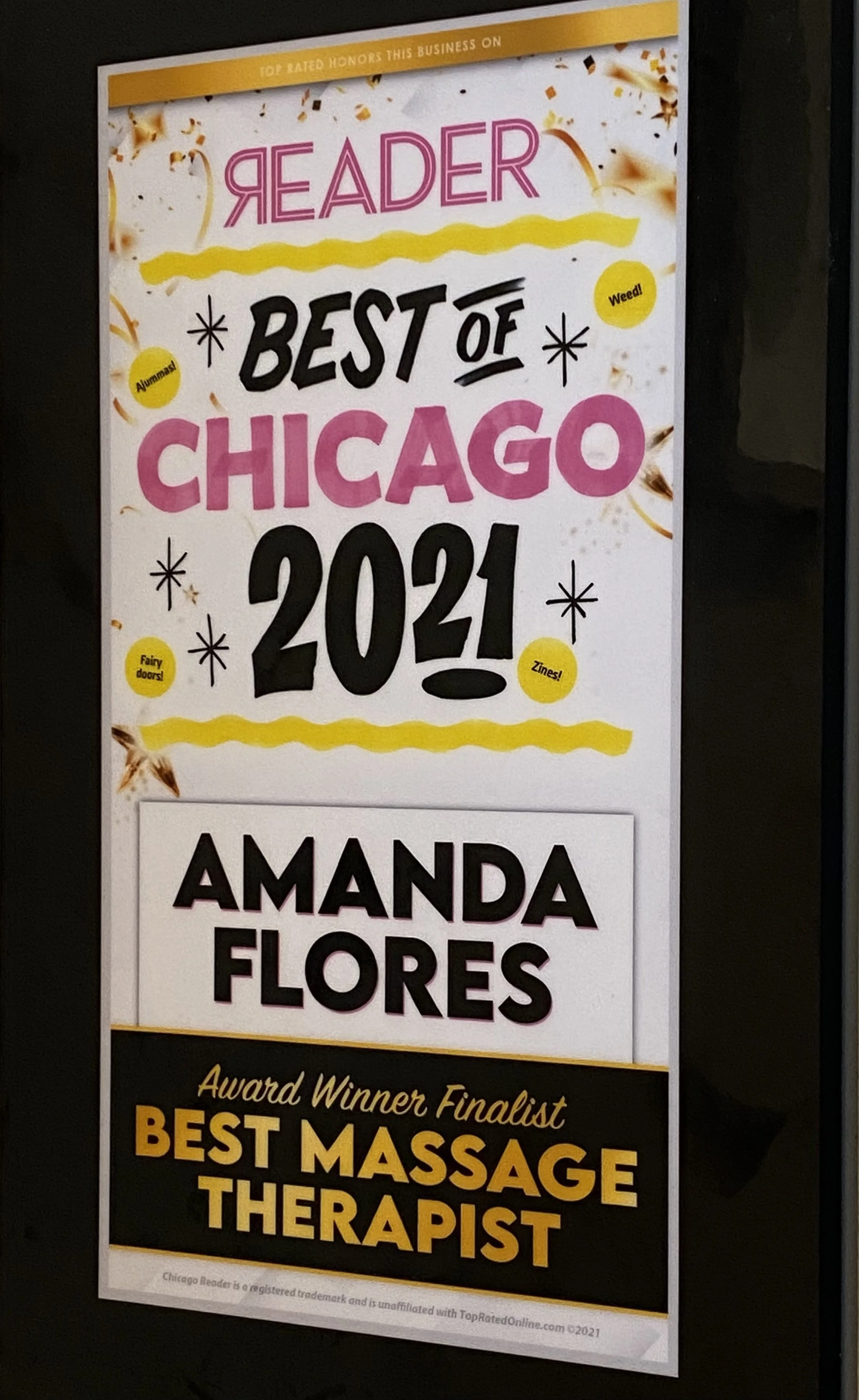 I was a 2021 finalist in the Chicago Reader's Best of Chicago 2021 annual series.